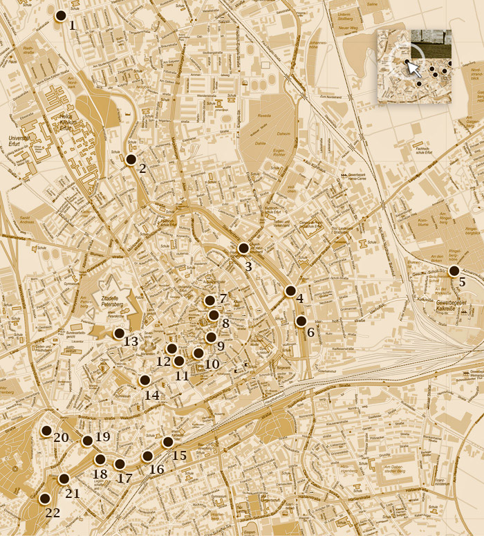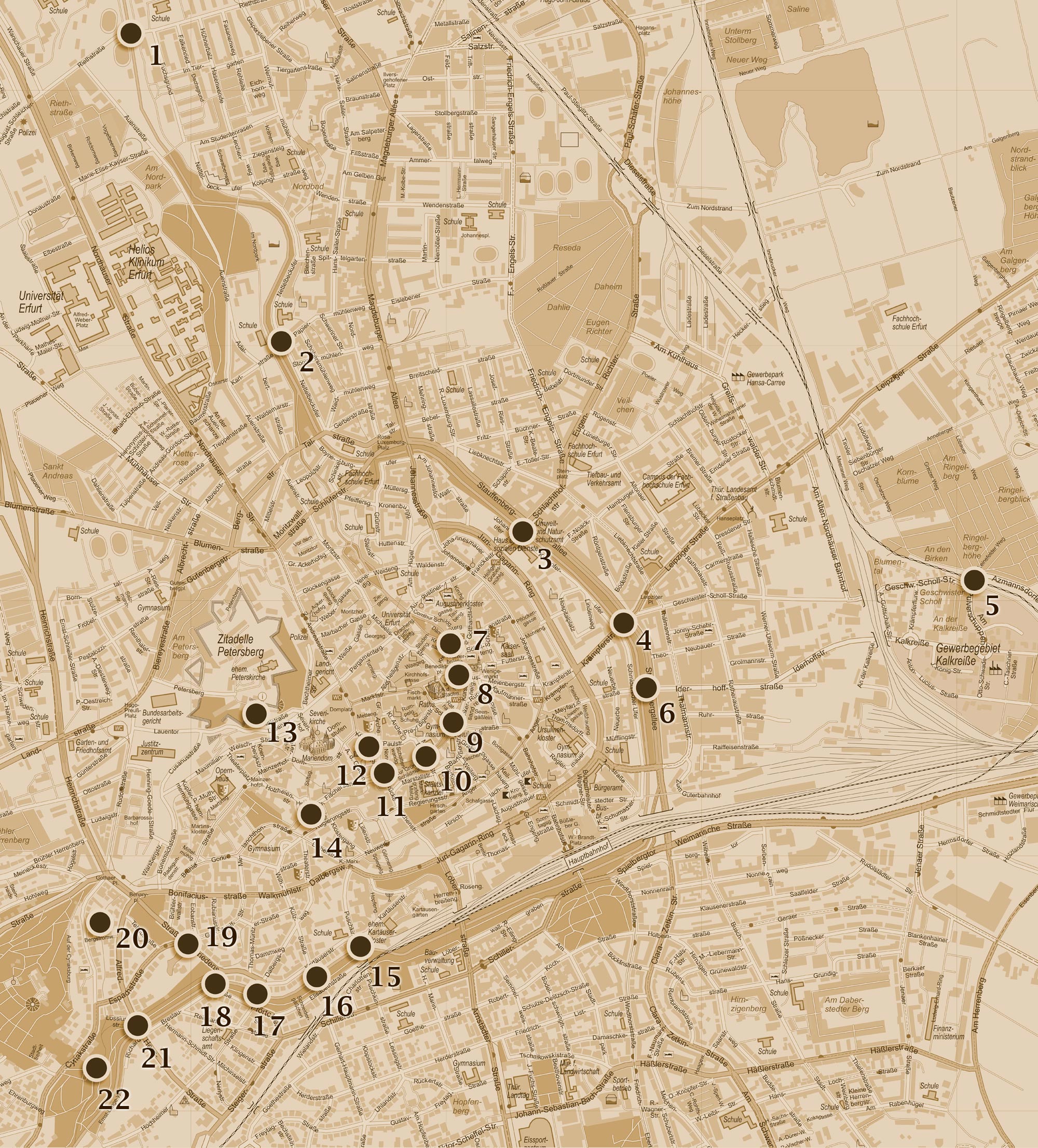 Interaktive Karte mit den historischen Brücken der Stadt Erfurt