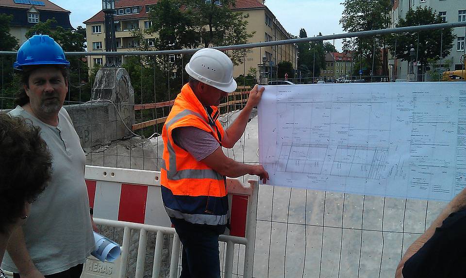 Daraufhin sind wesentliche Aspekte der Entwurfs- und Ausführungsplanung präsentiert worden, indem Vertreter des Tiefbauamts Erfurt die konstruktiven Besonderheiten des historischen Bogentragwerkes erläuterten.
